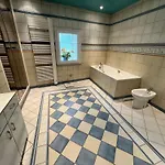 Les salles de bains de villa comprennent également un bidet et une douche. Des draps de bain font également partie des articles de toilette.