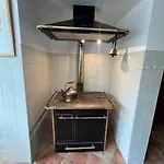Les équipements de cuisine du Gîte d'antan - L'Artdu'Net - comprennent une cafétière/théière électrique, un réfrigérateur et de la vaisselle, fournis dans un coin repas extérieur.